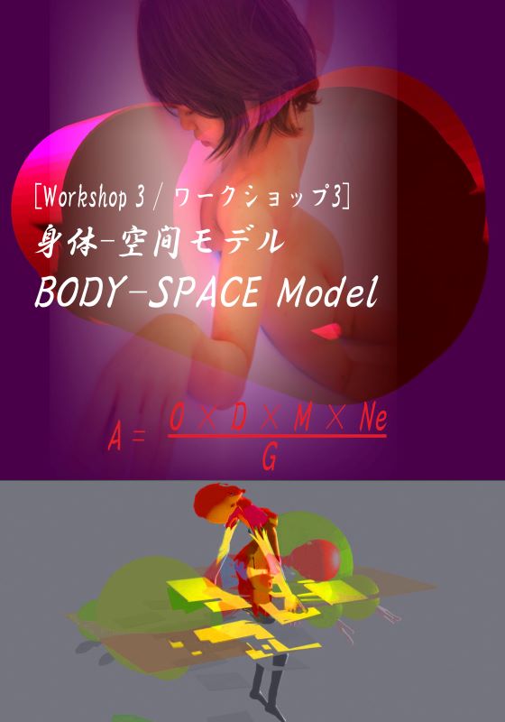 スペースチューブの中では、人間の動きとスペースチューブの動きは、容易に親和的な一体関係を形成します。スペースチューブは人間のバランスを崩しますが、人間がスペースチューブに身を「委ねる」ことで、スペースチューブは人間に「新しいバランス」を与え、「新しい姿勢」の形成を支援します。このワークショップでは、両者の支援関係を「身体-空間モデル」として表現します。